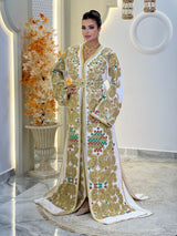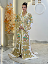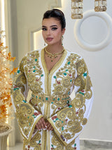 Comprend : une ceinture dorée brodée de pierres vertes et rubis, une housse signature Kaftan Elegance et une livraison internationale express.