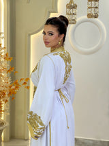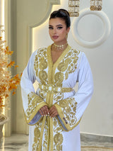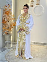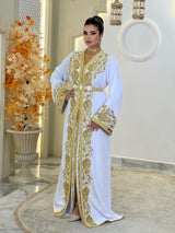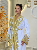 Comprend : une ceinture dorée brodée ornée de pierres nacrées, une housse signature Kaftan Elegance et une livraison internationale express.