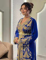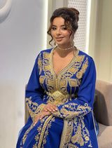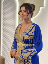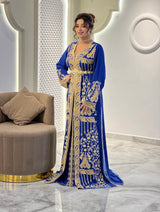 Cette magnifique lebsa marocaine en tissu imprimé avec pierres et broderies est parfaite pour vos occasions spéciales.