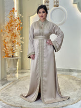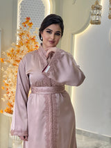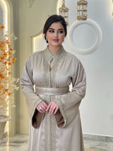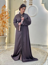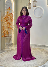 Le caftan Dounia incarne une élégance intemporelle grâce à sa teinte prune profonde et ses détails raffinés. Confectionné en crêpe luxueux et orné de broderies ton sur ton délicates, il célèbre une sophistication minimaliste empreinte d'un esprit royal.