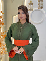 Confectionné en crêpe luxueux et orné de broderies géométriques délicates, ce modèle existe dans une superbe palette de couleurs, alliant sobriété et grâce intemporelle.