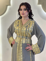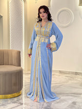 Caractérisé par ses broderies géométriques audacieuses, ce caftan allie tradition et modernité, affirmant ainsi l'élégance et la force.