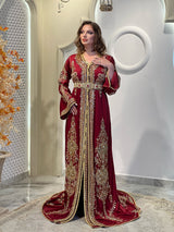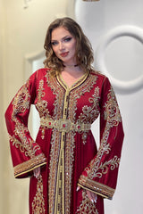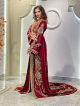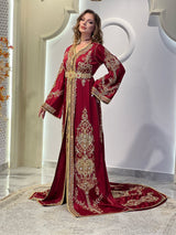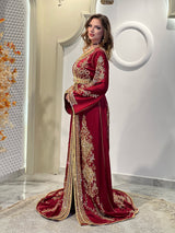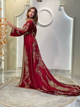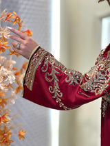 Le caftan Malika est un hommage à la royauté — confectionné dans un rouge profond et riche qui évoque la puissance, l'élégance et la féminité intemporelle.